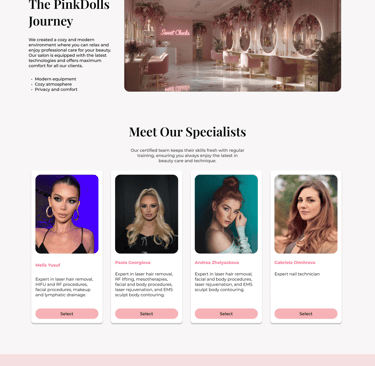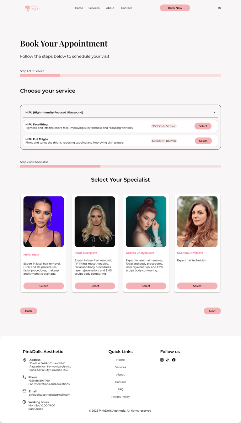 A streamlined booking overlay ensures users stay in context while selecting specialists, dates, and times, reducing friction and abandonment