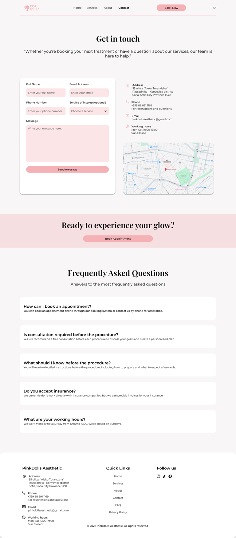 A clear contact layout paired with map integration provides reassurance, convenience, and trust signals.